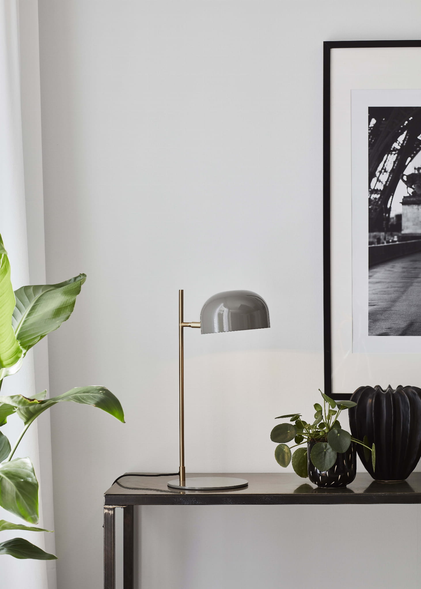 Lampa stołowa POSE 1L od Markslöjd to kwintesencja elegancji z nutą nowoczesnego designu. Połączenie szczotkowanego mosiądzu z szarym metalem tworzy stylowy duet, który idealnie wkomponuje się w wyrafinowane wnętrza, dodając im klasy i subtelności.